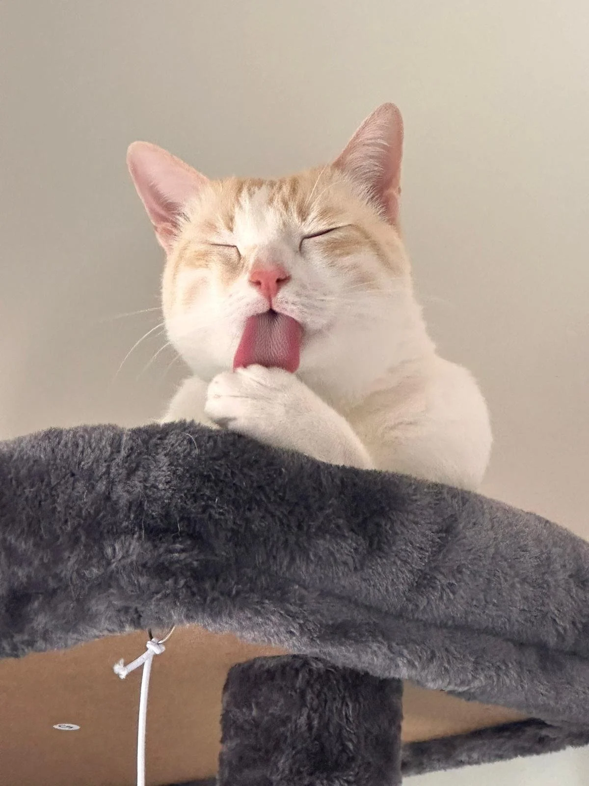 Mouse, resting on top of his favourite cat tree, wrapped in peace and contentment. A reminder that healing lives in stillness and love.